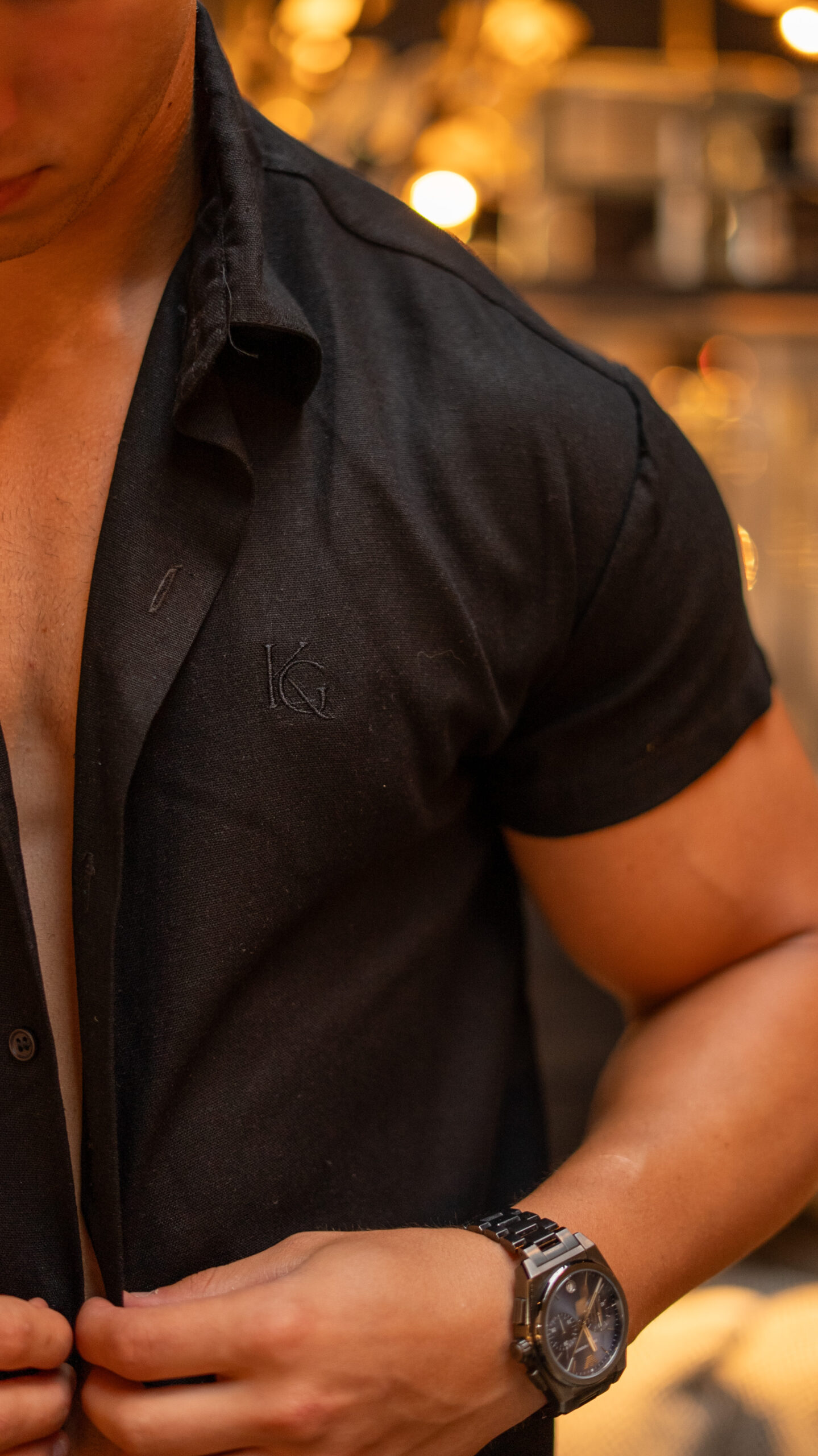 Camisa de lino con cuello italiano y manga corta. Combina estructura y frescura, logrando un equilibrio perfecto entre lo formal y lo casual. Versátil para uso diario o eventos informales.
